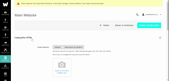 Quando liberamos a loja para vocês, uma mensagem será exibida no topo da loja informando que a loja está em periodo de testes, esta mensagem é utilizada para que enquanto a loja não estiver completa, avisar o cliente que os pedidos não serão processados e que as compras serão descartadas.